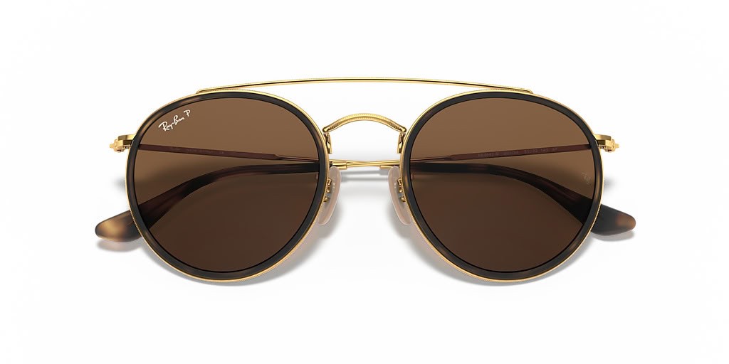 Ray-Ban RB3647N جولة جسر مزدوج م (51 - 22) / بني العدسات الذهب الإطار النظارات الشمسية