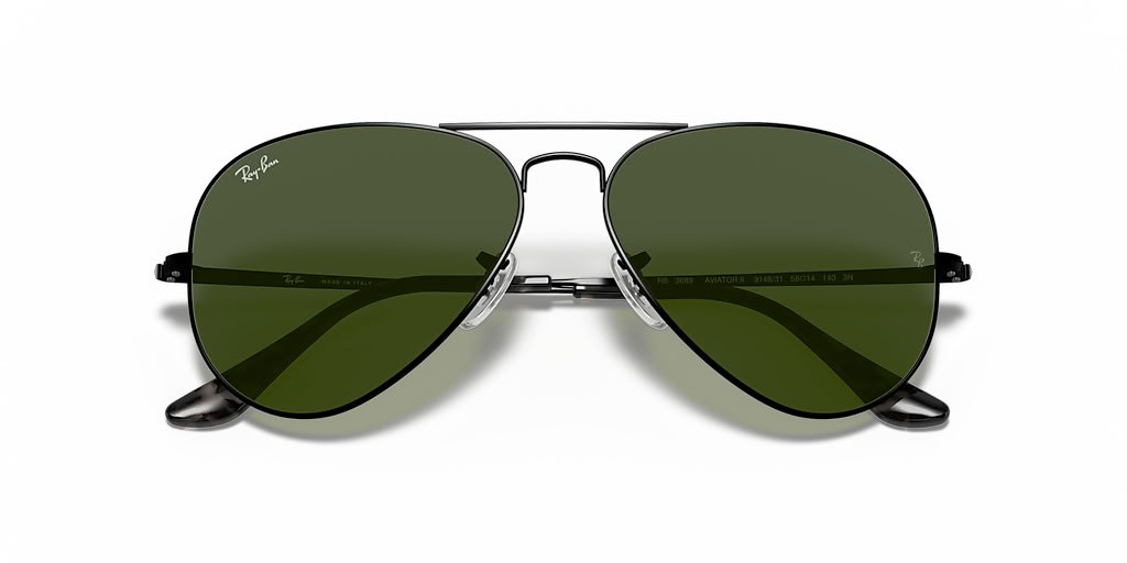 Ray-Ban RB3689 Aviador de Metal II L (58 - 14) / lentes de color Verde y Negro Gafas de sol de montura