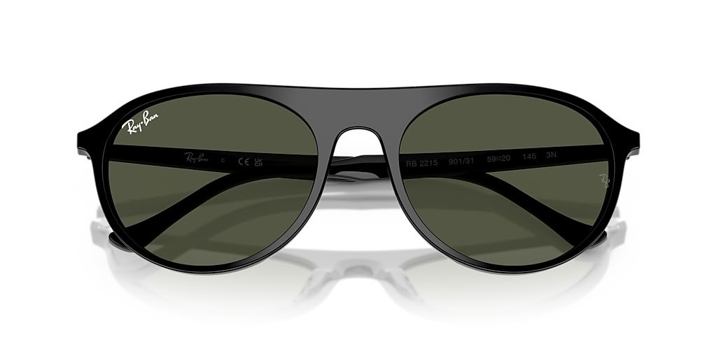 Ray-Ban RB2215 XXL (59 - 20) / Gröna linser och Svart ram Solglasögon